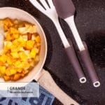 Akcesoria Grande to jedyne w swoim rodzaju, wytrzymałe do temperatury aż 210°C, łopatki, szpatułki, chochelki oraz inne dodatki wyposażone w praktyczne rączki. Zostały specjalnie wyprofilowane tak, aby po odłożeniu ich powierzchnia robocza nie dotykała blatu, co zapobiega zabrudzeniom. Tymczasem czterostronna tarka Nyomi posiada korpus ze stali nierdzewnej pokryty powłoką non-stick, która zapobiega kłopotliwemu przywieraniu ścieranych warzyw. Tarka jest wygodna w trzymaniu i użytkowaniu, gdyż uchwyt i podstawa są pokryte specjalnym tworzywem. Deski z serii Papaya wykonane zostały z drewna kauczukowego i wyposażone w rynienkę do zbierania ściekającego soku, co dodatkowo również zabezpiecza blat przed zabrudzeniami podczas pracy w kuchni.
