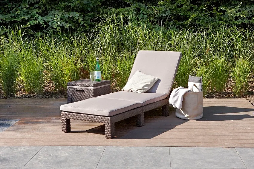 Technorattanowy leżak z miękkim materacem. Fot. Ogrodosfera