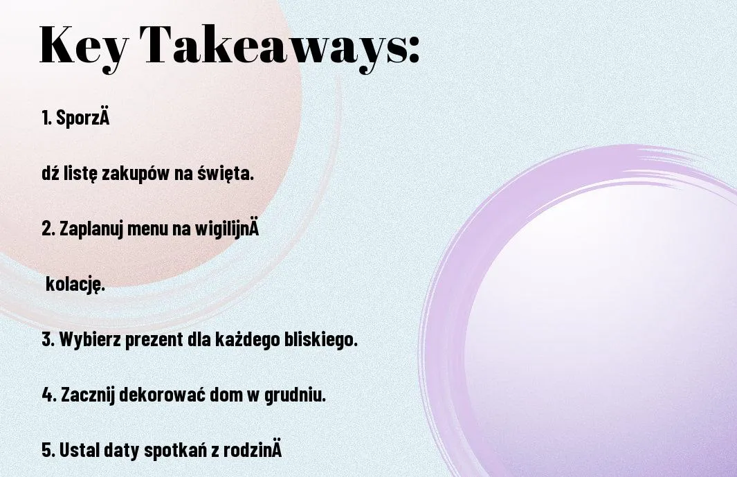 Warto wcześniej zaplanować terminy spotkań z bliskimi, aby zapewnić sobie odpowiednią ilość czasu na wspólne chwile. Możesz stworzyć kalendarz świąteczny, który pomoże Ci uwzględnić wszystkie najważniejsze daty i eventy. Nie zapomnij o przygotowaniu świątecznych inspiracji na te spotkania!