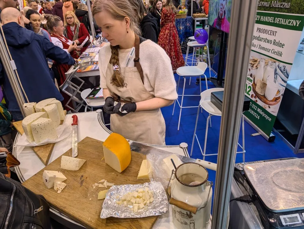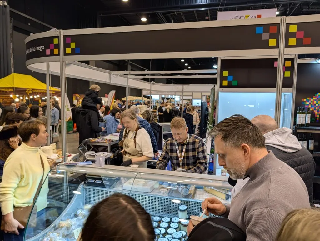 Niezwykle miłym akcentem była wizyta na stoisku Farmy Mlecznej „Pokaniewo Złote Jabłko”. Okazało się, że obsługują je sami właściciele – jedni z bohaterów serialu „Rolnicy z Podlasia”. To bardzo sympatyczni ludzie! Kupicie u nich świetną Goudę, sery podpuszczkowe oraz ser typu feta. I nawet awaria maszynki nie spowodowała widocznego stresu. Dobrych ludzi miło spotkać.